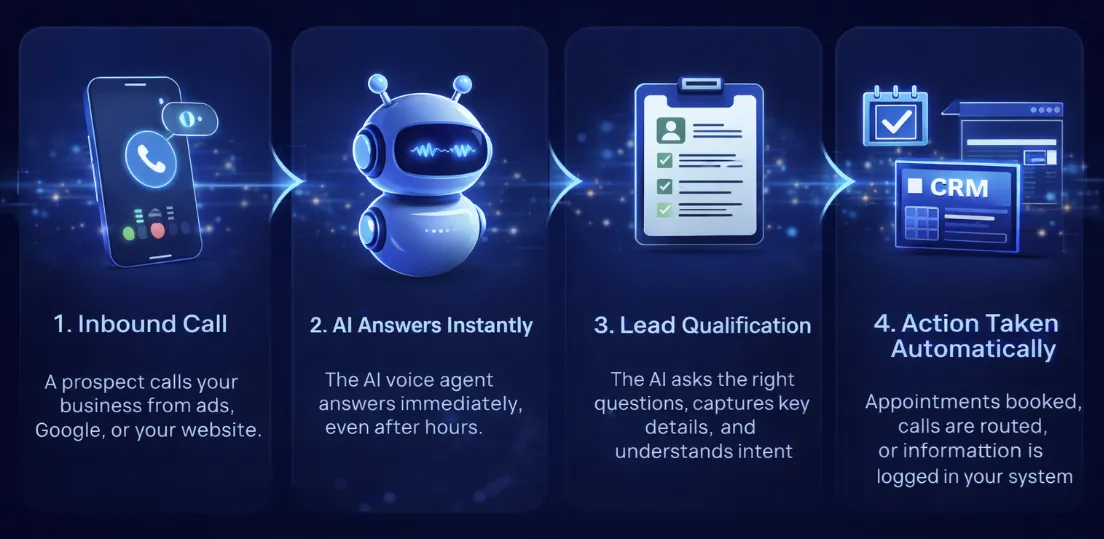 AI voice agents solve this by ensuring every call is answered instantly, every caller is engaged, and every opportunity is handled professionally without relying on staff availability.